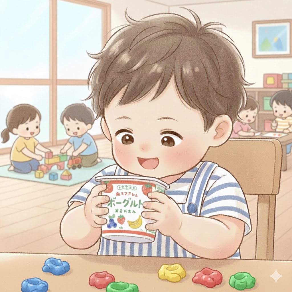 いつも食べるヨーグルトやおやつ、さまざまな容器に記載されている成分表示を見る ことが大好き。一通り目を通し、「なんて書いてある!?」と確認。