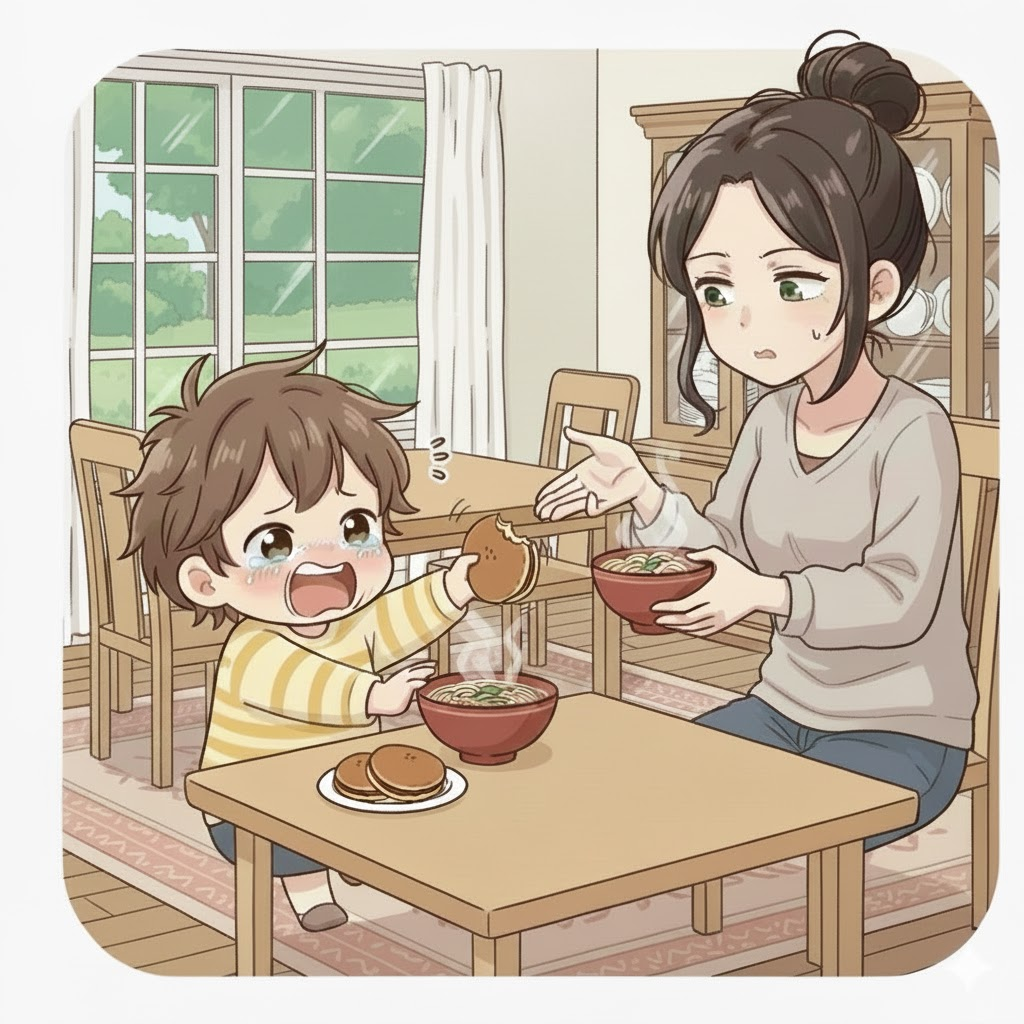 エピソード:母「さっきラーメンって言ったから作ったのに!!!(怒)」本当はどら焼きが食べたかったAくん。・・・うまく伝えられずかんしゃくに発展。